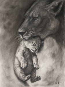 There’s something profoundly moving about a lioness carrying her cub – strength and tenderness woven into a single moment. As I created this piece, I wanted to capture that quiet connection between love and survival. Her jaws, powerful enough to take down prey, now hold life with the gentlest care.